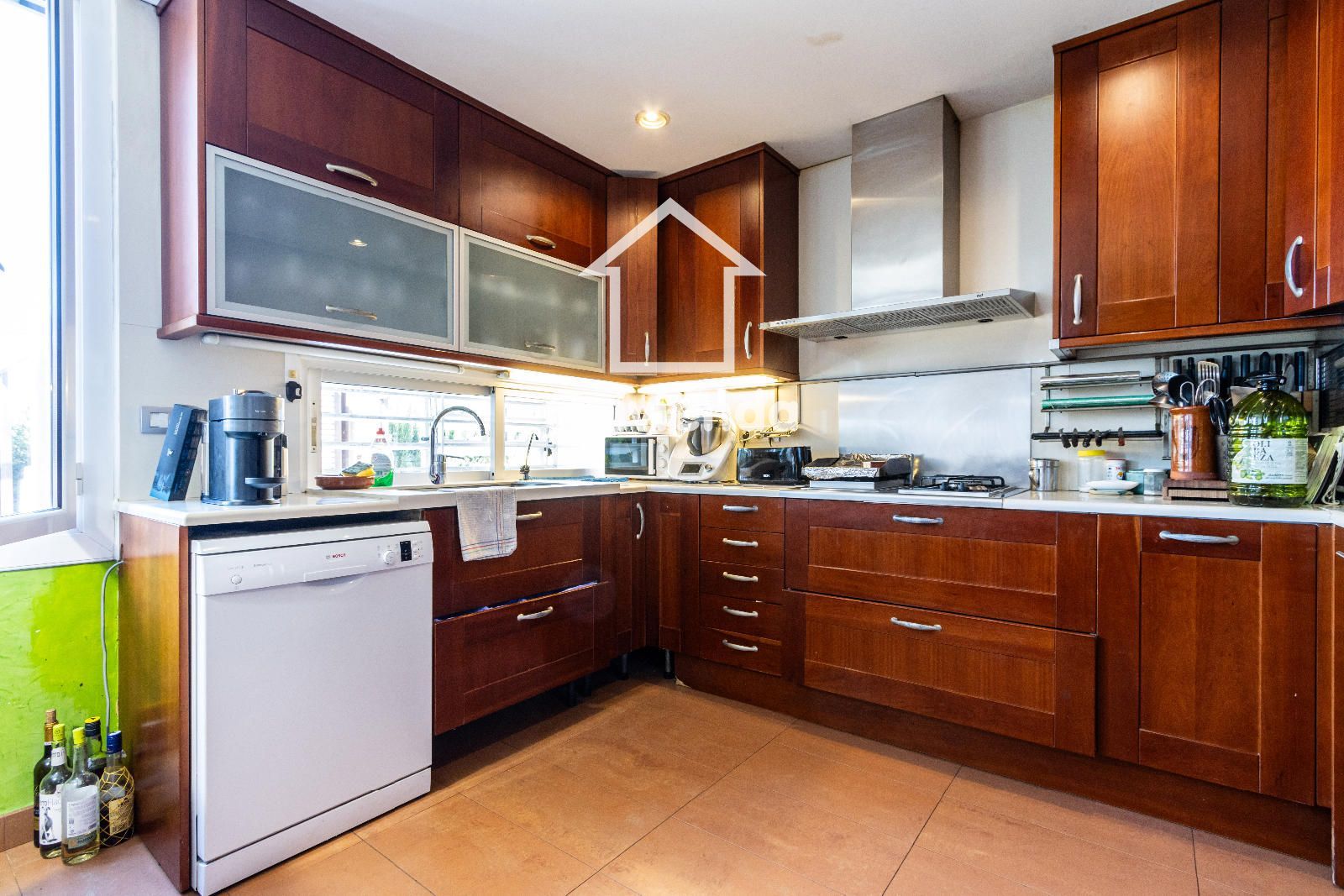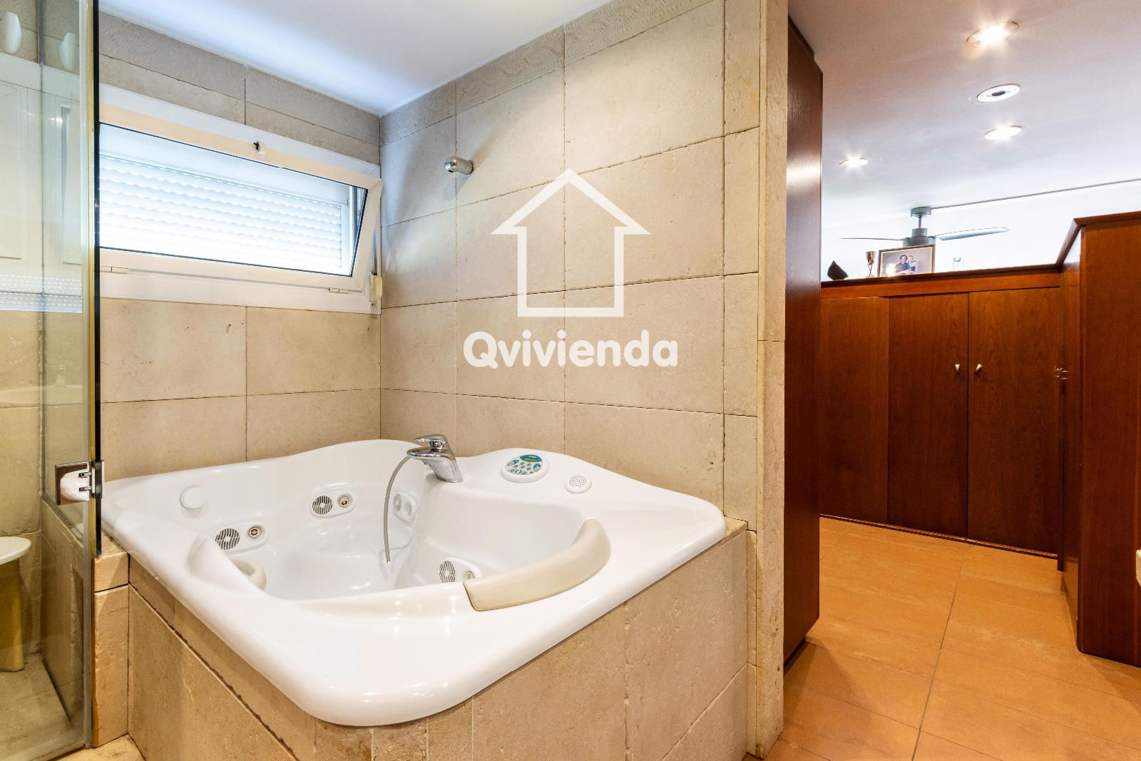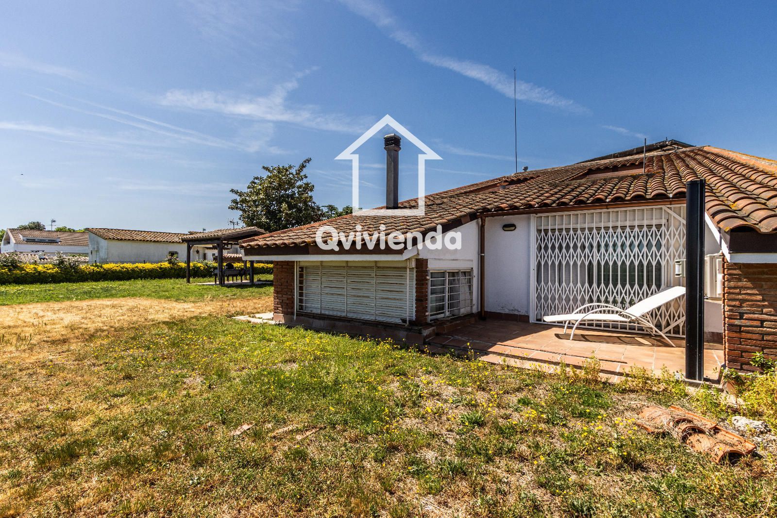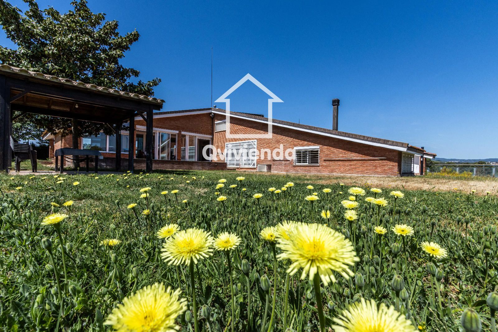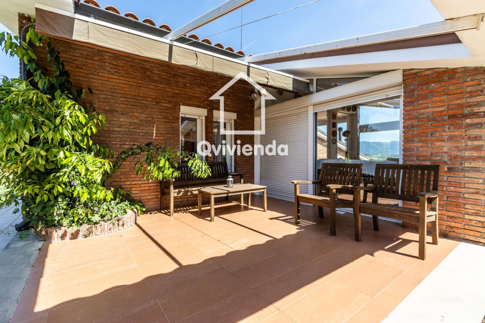 El exterior es simplemente excepcional. Desde el jardín principal, accesible directamente desde la vivienda, se accede a una elegante zona cubierta con celosía de madera, ideal para disfrutar de comidas y cenas al aire libre, acompañada de una gran barbacoa con horno de piedra.