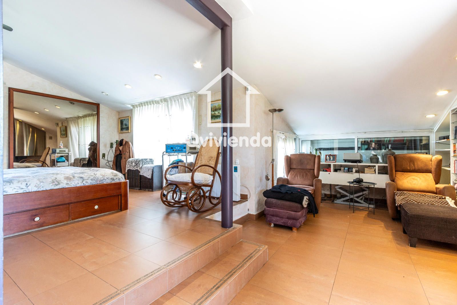En la planta más alta, la propiedad ofrece tres espacios diáfanos con grandes ventanales, que brindan espectaculares vistas a la montaña y múltiples posibilidades de uso: despacho, gimnasio, sala de juegos o estudio creativo.