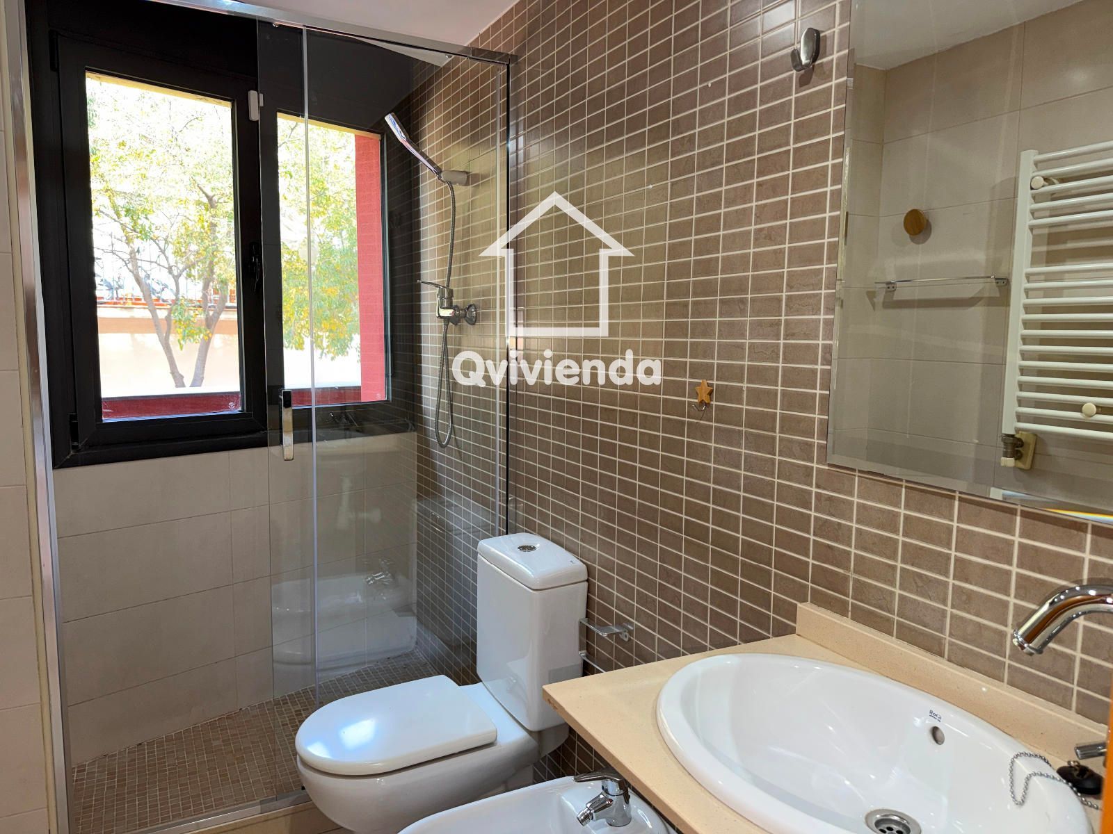 Un baño completo, equipado con lavabo, inodoro, bidé y ducha, funcional para el día a día.